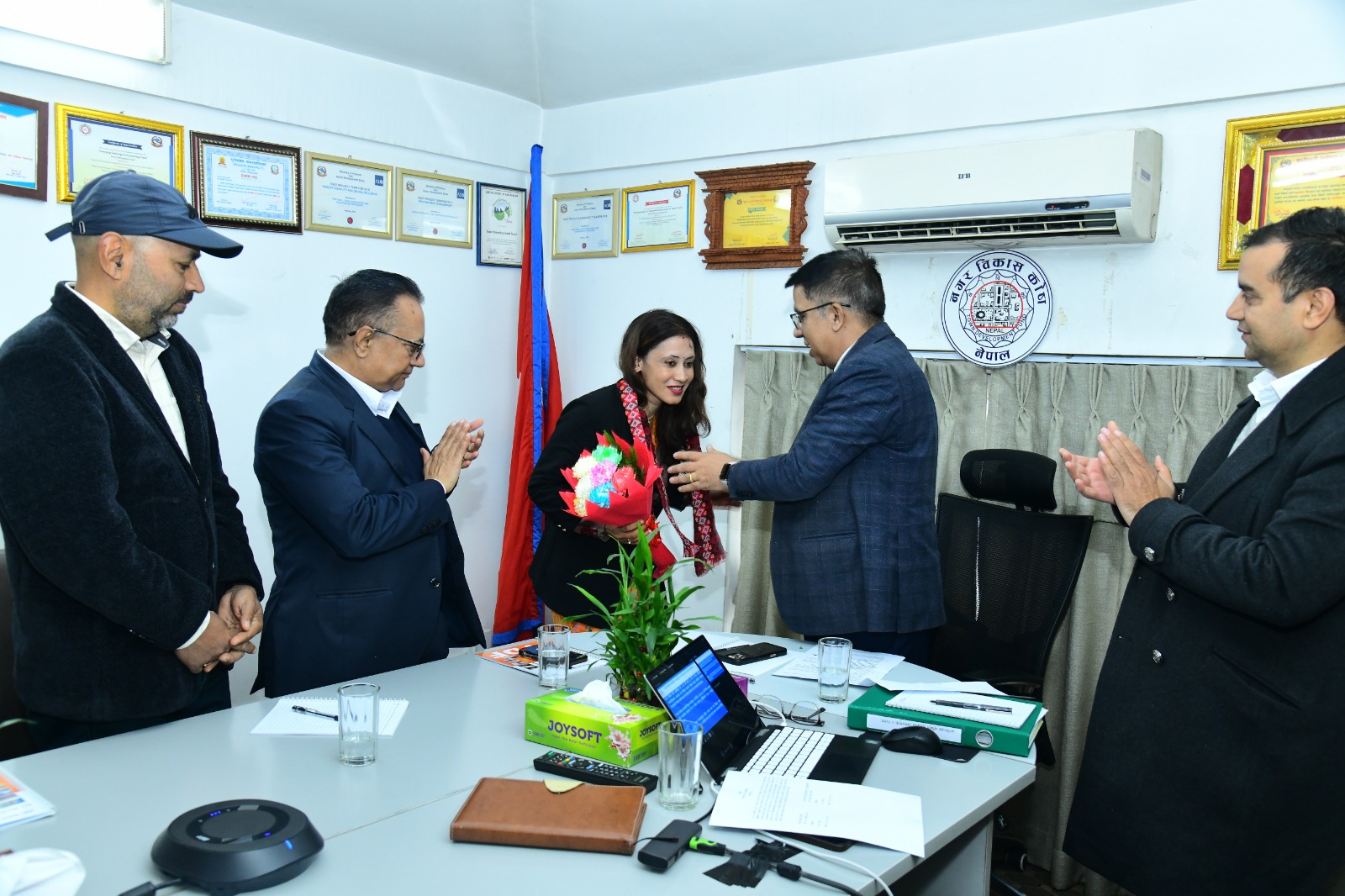 नगर विकास कोष सञ्चालक समितिको मिति २०८२।१०।१५ को २३१ औं बैठकमा कोषका अध्यक्ष एवम् शहरी विकास मन्त्रालयका सचिव श्री गोपाल प्रसाद सिग्देलज्यूबाट नगर विकास कोष ऐन, २०५३ को दफा १४ को (२) (ङ१) वमोजिम कोष सञ्चालक समिति सदस्यमा नियुक्त हुनु भएका डा. सर्मिला थापाज्यूलाई हार्दिक स्वागत तथा नगर विकास कोष नियमावली, २०५४ को नियम १९ वमोजिम सपथ ग्रहण गराउनु भयाे ।