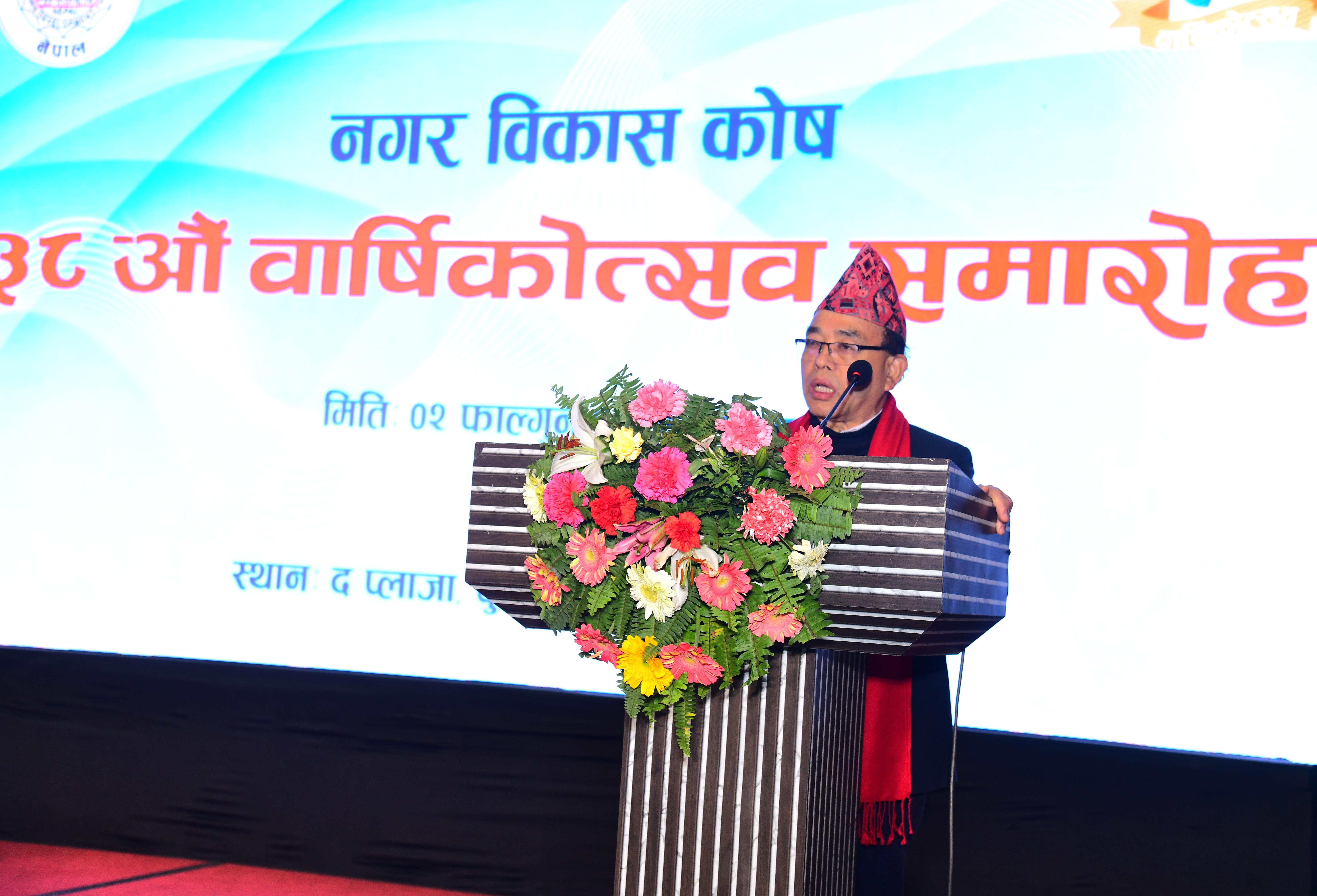 कोषको ३८ औं वार्षिकोत्सव समारोह राष्ट्रिय योजना आयोगका माननीय उपाध्यक्ष प्रकाश कुमार श्रेष्ठज्यू, नेपाल नगरपालिका संघका अध्यक्ष भिम ढुंगानाज्यू, गाउँपालिका राष्ट्रिय महासंघ नेपालका अध्यक्ष श्री लक्ष्मी देवी पाण्डेज्यूको आतिथ्यमा आयोजना भएको वार्षिकोत्वसव कार्यक्रममा कोषका संचालक सदस्यज्यूहरु, कोषको शहरी विकास मन्त्रालयका सहसचिवज्यूहरु एवम् सम्बद्ध पदाधिकारीहज्यूहरु, नेपाल सरकारका विभिन्न मन्त्रालय, विभाग एवम् निकायहरुका पदाधिकारीज्यूहरुको, दातृ निकायका प्रतिनिधीज्यूहरुको महत्ववपूर्ण उपस्थिति रहेको थियो ।